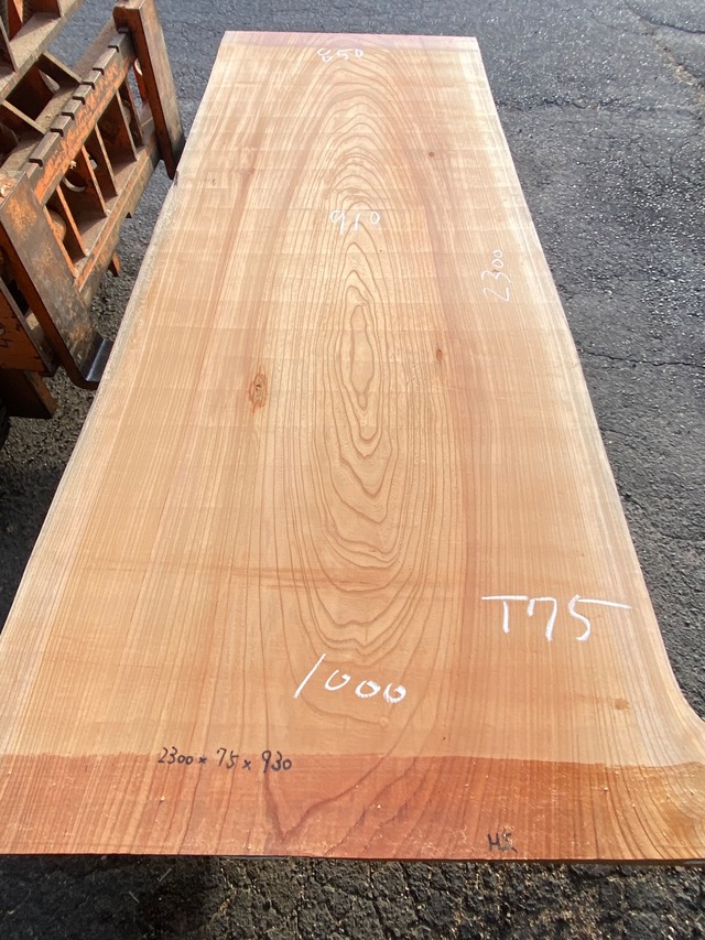 長さ2300 mm 幅 850〜1000 mm 厚み75 mm 十分な大きさ 綺麗な中央木目 原板未乾燥